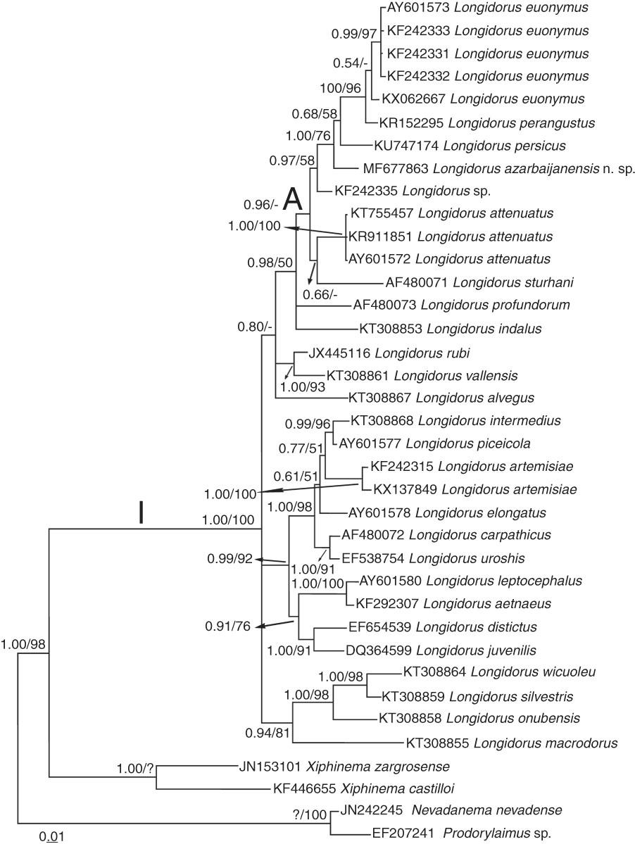 Morphometrics of Longidorus azarbaijanensis n_ sp_ All measurements are in μm (except L in mm) and in the form: mean±SD (range)_
