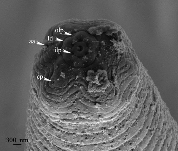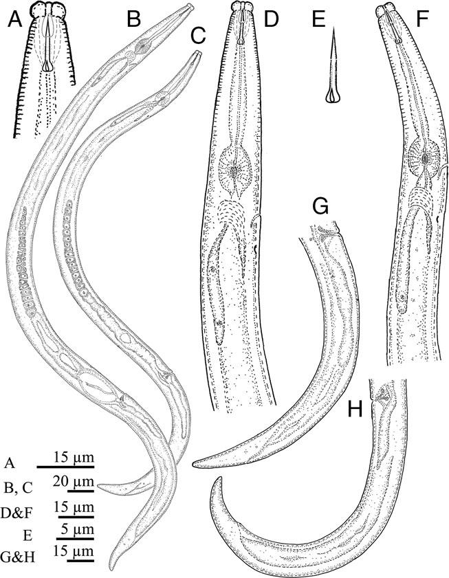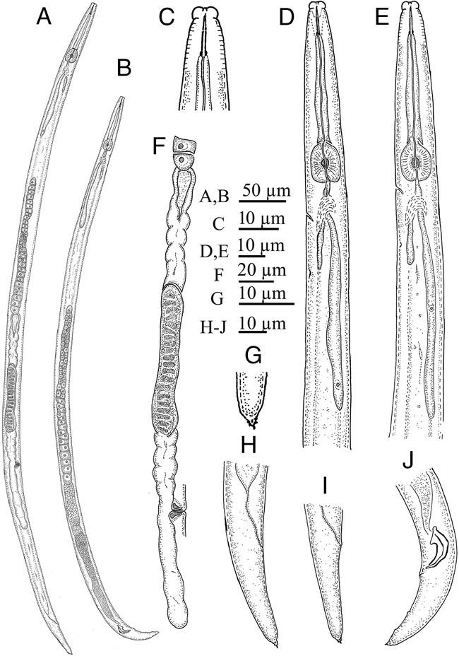 | Body diam. at median bulb | 13.5 | 14.0 ± 1.4 (12.0–15.5) | 13.0 ± 0.8 (11–14) |