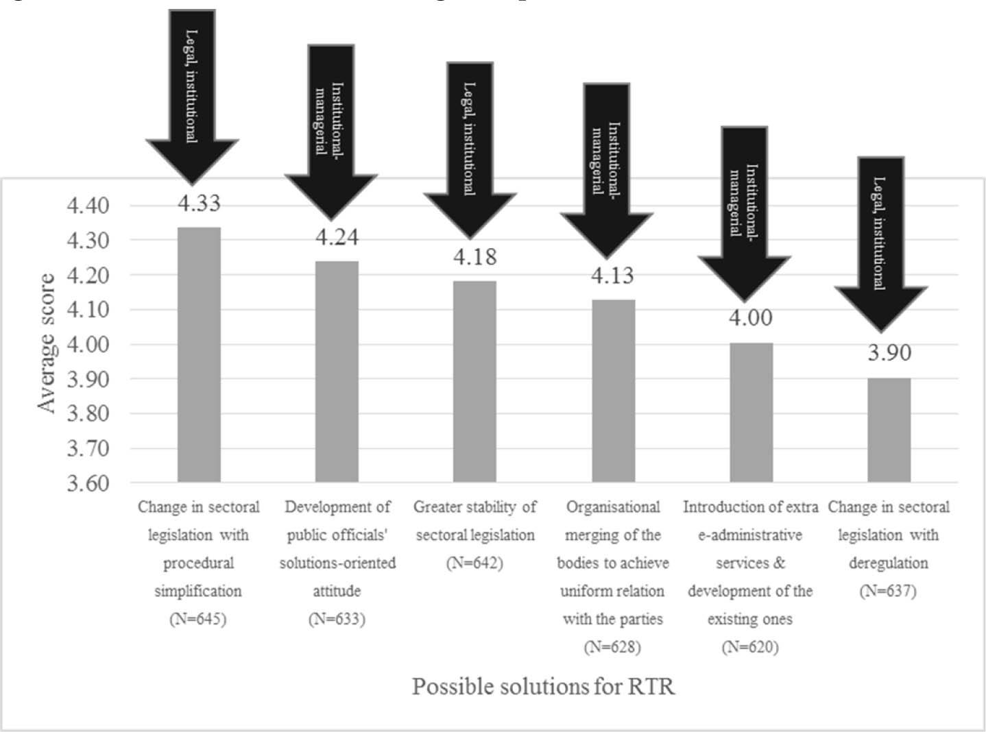 | Greater stability of sectoral legislation | Change in sectoral legislation with deregulation | Change in sectoral legislation with procedural simplification | Introduction of extra e-administrative services & development of the existing ones | Organizational merging of the bodies to achieve uniform relation with the parties | Development of public officials’ solutions-oriented attitude | |