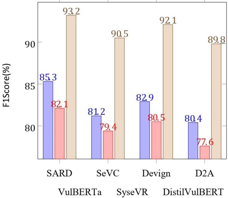 | Model | Score | SARD | SeVC | Devign | D2A |