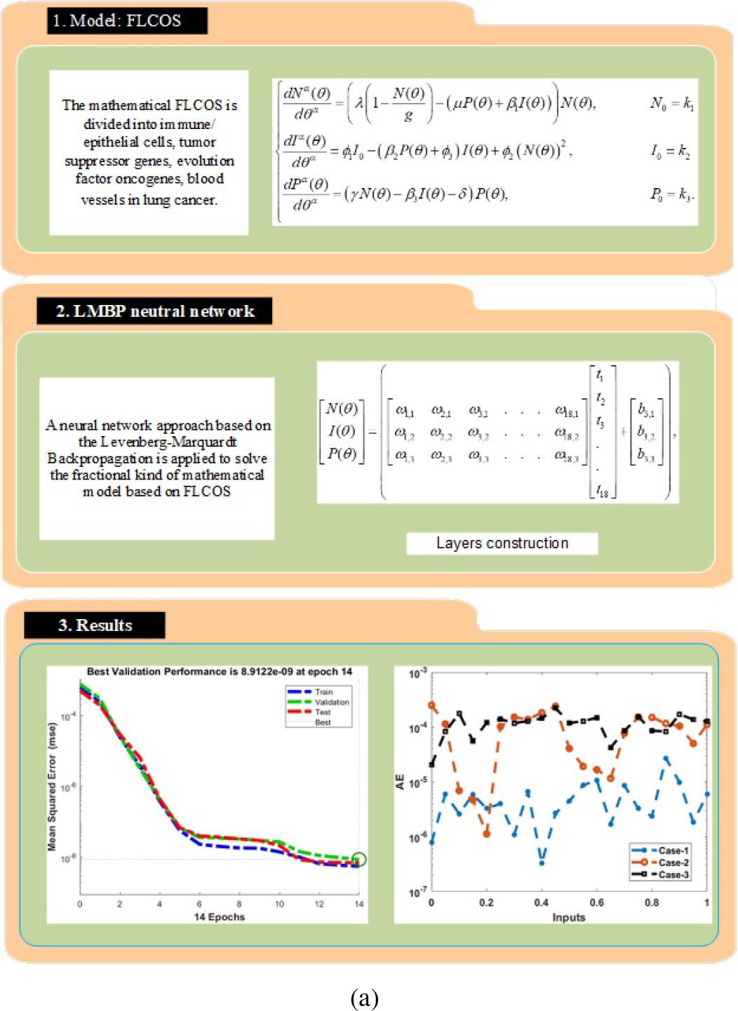 Among the most deadly cancers in the globe, Lung Cancer (LC) still causes a great deal of sickness, death, and financial strain on medical networks. About two million additional instances and over 1.8 million fatalities occurred five years ago independently, which makes it the worlds top source of death due to cancer [1]. LC affects a greater number of individuals annually than breast, prostate, and colorectal cancers taken together, which emphasizes the critical need for improved prevention, initial detection, and treatment strategies. The monetary burden is additionally significant, with yearly worldwide expenses for therapy, lost employment, and hospice care topping one hundred eighty billion dollars [2]. Medical facilities with little funding are particularly affected by this economic strain. In accordance with the American Cancer Society, the illness is divided into two categories: LC based non-small cells, which makes up around 85 percent of cases, and the more dangerous LC based small cells, which is characterized by rapid progression and earliest metastases [3]. Big cell malignancy, squamous cell carcinoma, and adenocarcinoma are molecule-by-different subgroups of the first category, according to the precision health care model, all require specific therapy approaches. Fibroblast cells development dimension receptors amplifiers and other genetic changes are characteristic of cancers of squamous cells, whereas enforceable changes like skin growth dimension receptors or kinase based on plastic lymphoma changes are common in a tumor that is usually found in people who do not smoke. Multidisciplinary treatment strategies are necessary since the current studies highlight cancer microenvironment variation, such as vasculature and invasion of immune cells, for the purpose to create a confrontation with conventional medicines [4,5]. Nicotine is the primary risk factor, with 80–90% of cases linked with regular smoking and passive contact. Gas called radon, asbestos fibers, air pollution, and other occupational and ecological risks constitute additional major concerns. Depending on the location, radon, a hazardous byproduct of soil nuclear deterioration, can enter areas of occurrence and cause anywhere from three percent to fourteen percent of LC cases [6]. Likewise, industrial exposition to mesothelioma remains a concern in industries such as building and mining, having a 20–40 year incubation period based on sensitivity and illness progression. Remarkably, twenty-five percent of LC sufferers are nonsmokers, with East Asian women having the highest incidence, and numbers exceeding fifty percent in positive groups. This propensity encompasses lifestyle variables, interior pollutants, and genetic vulnerability, which cast doubt on the widely held belief that tobacco is the sole cause of LC. The acetylation of proteins and nucleotide dimethyl are two examples of epigenetic modifications that are increasingly being identified as significant factors in cancer-causing genes, opening up new avenues for prevention. With an average recurrence probability of nineteen percent and only five percent for distant sickness, the prospects for survival for LC remains bleak. This is due to the impact of delayed execution at an advanced point and the unclear effectiveness of treatment for incurable cancer [7]. Low-dose computerized tomography monitoring can increase lifespan by identifying cancers at earlier, curable phases. Yet difficulties, inaccurate results, exorbitant expenses, and inadequate screening techniques are impeding widespread adoption. Though its integration into standard medical procedures is still in its early phases, artificial intelligence has shown promise in diagnostic imaging by reducing errors in diagnosis by accurately distinguishing between nodules that are malignant and benign. LC has been controlled, mostly through the development of immunology and focused medicines, which have changed patient care. Initial research revealed a discernible thirty-five percent decrease in progression of disease associated with amalgamation treatments according to nivolumab and ipilimumab immune preservation treatment for battling recurrence following activity. LC requires a great deal of work that involves global tobacco abstinence and collaboration, later-stage precision medication, universal access to tests, and comprehensive prevention [8]. A number of mathematical schemes have been presented to solve the LC model, e.g., Amilo et al. [9] presented the fractional kind of mathematical system for LC by applying the integrated therapeutic scheme, Saeidi, et al. [10] provided an optimal solution based LC by applying the comprehensive Bessel polynomials, Abdullah, et al. [11] presented the mathematical modeling along with the analysis of smoking using the LC dynamics. Ghita et al. [12] provided the LC dynamics based on the fractional kind of impedance modeling using the mimicked setup of lung tumor. Hassani et al. [13] provided the investigations based on the fractional tumor-immune communication system associated to LC through comprehensive Laguerre polynomials. Eftimie et al. [14] provided the mathematical examination of innate immune comebacks based LC. Lee et al. [15] provided the optimal control based on the mathematical cancer therapies system. Kolev et al. [16] discussed the numerical simulations based on the interactions of cellular and tumor immune system using the treatment of LC. All these above-mentioned approaches have their own significances, merits, and demerits, while the solutions of the nonlinear mathematical model based on the LC system has never been exploited before using the stochastic neural network procedures.