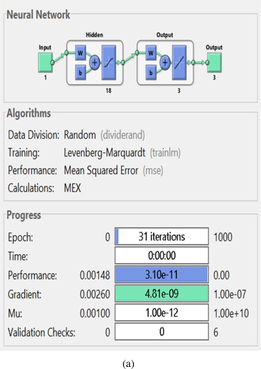 * The correctness of the designed neural network scheme has been observed through the matching of the outcomes, best training performances and insignificant AE.