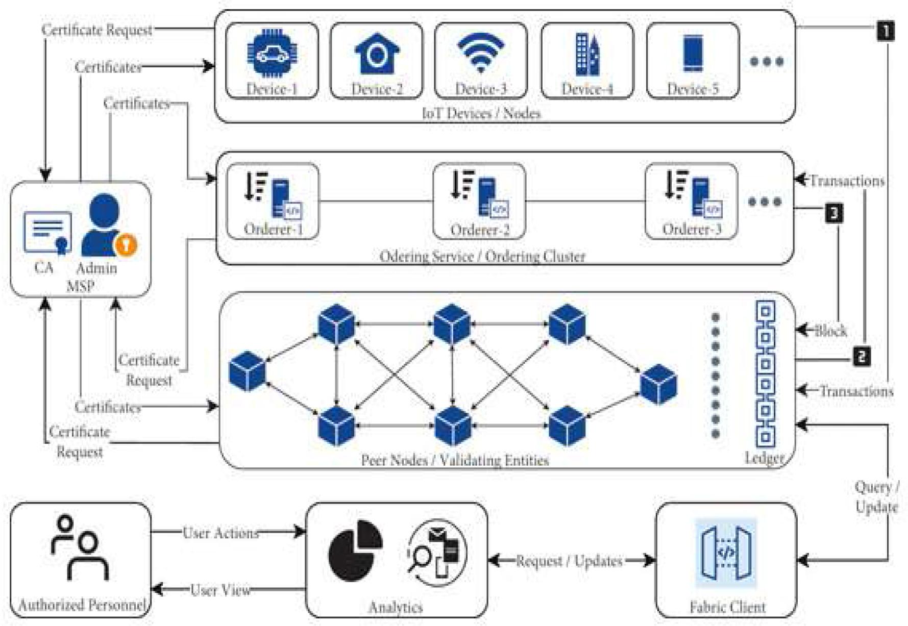 To enhance data reliability and accuracy, the system employs edge computing at the gateway, performing local computations to reduce latency and improve response times. The IoT devices use lightweight communication protocols like MQTT and CoAP to ensure efficient data transfer, even in bandwidth-constrained environments. Once preprocessed, the data is securely transmitted to the blockchain network for storage and validation. This seamless integration between IoT devices and the backend infrastructure enables continuous, real-time monitoring and analysis, ensuring timely detection of anomalies and operational inefficiencies.