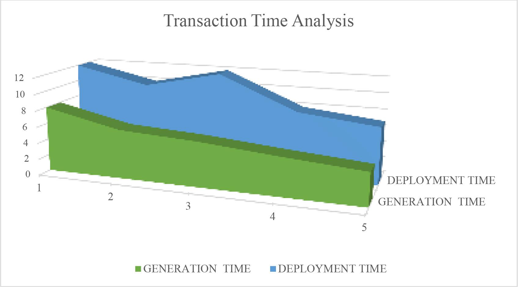 Now the performance analysis of the proposed framework has to check for the case when number of transactions are increasing. For this, computation cost for signing and verifying operations is analysed with the reference to the number of transactions as illustrated in Figure. Results shows that the generation and deployment time are linearly varying as the number of transactions increases. Moreover, latency (end-to end time delay) is estimated for every transactions. Results shows that the latency linearly increases as the number of transaction increases.