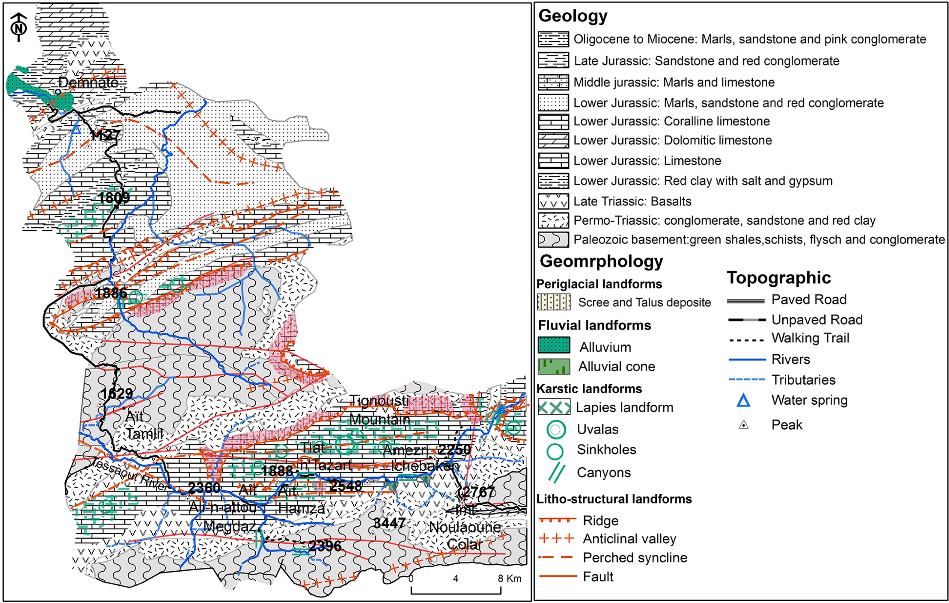 | 1 | Waterfall of Asfdar | Aït Tamlil | Limestone | Line | No |