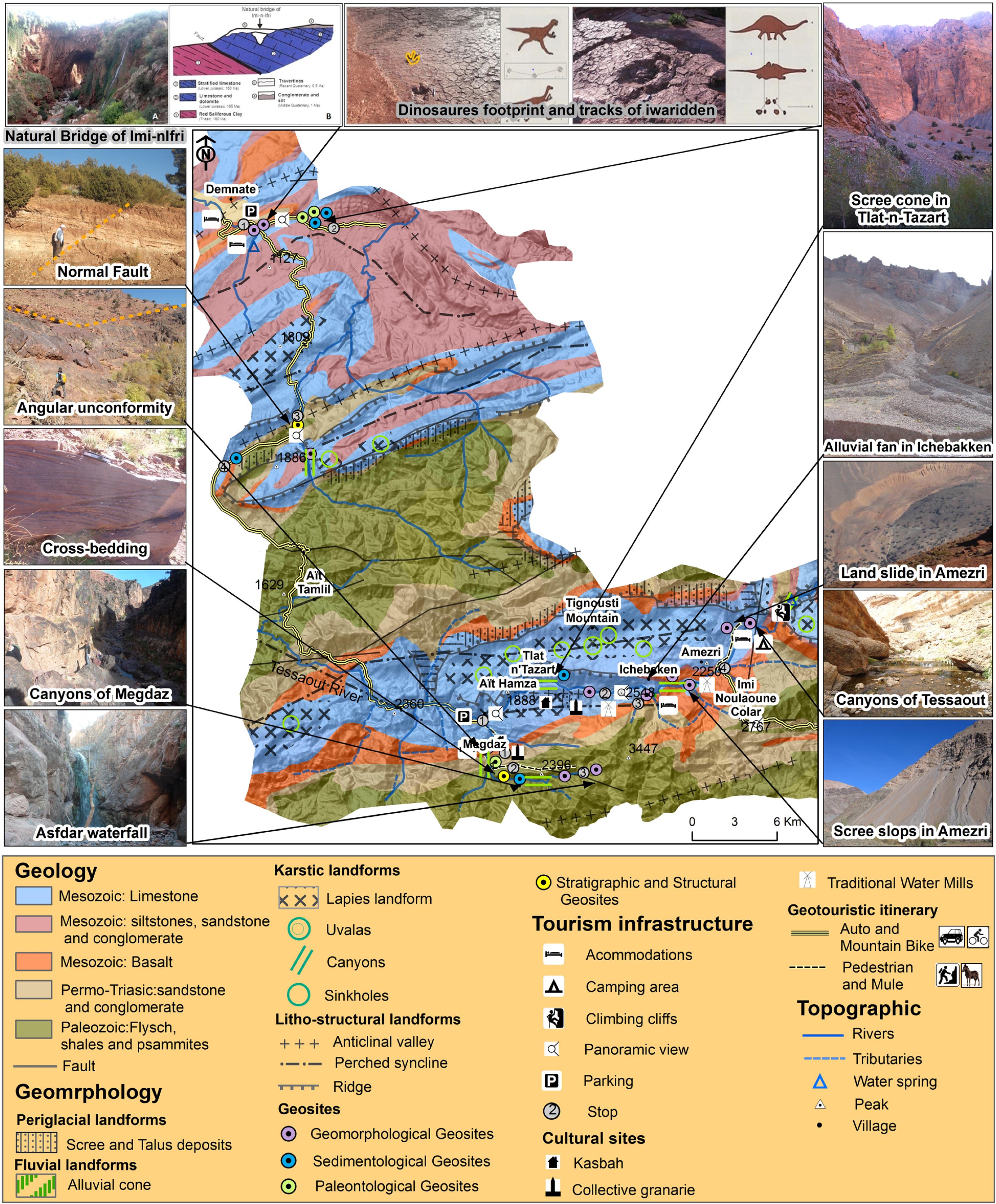 | No. | Geosites | Commune | Lithology | Typology | Belonging to the M’goun Geopark |