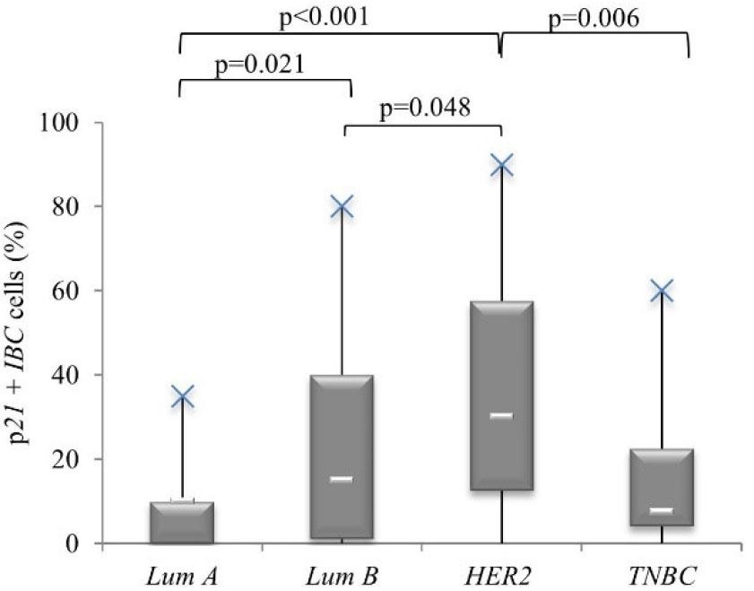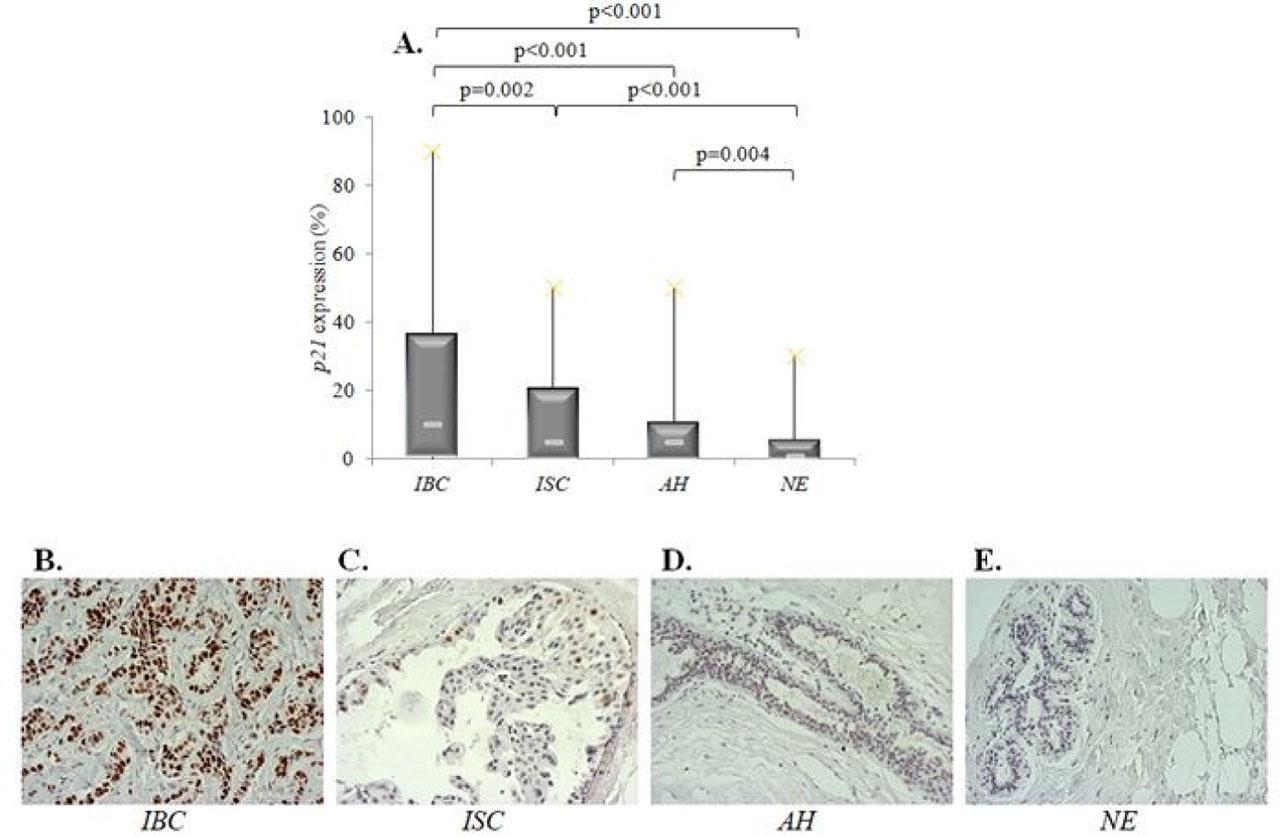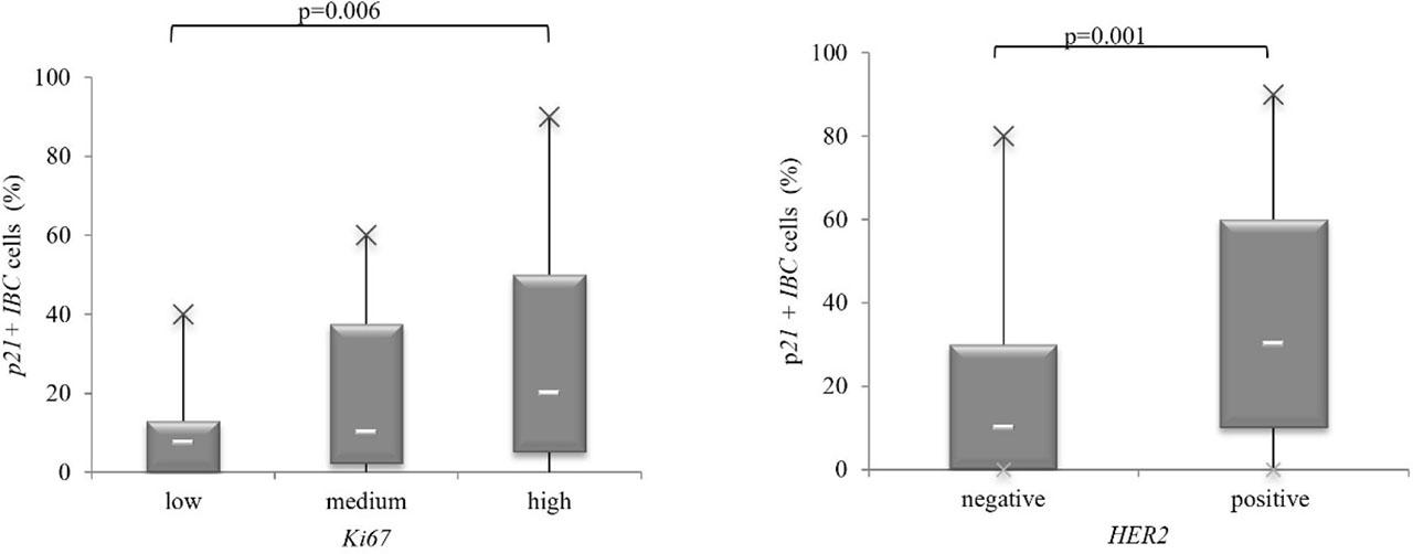 Association between p21 expression in IBC and examined clinicopathological characteristics_