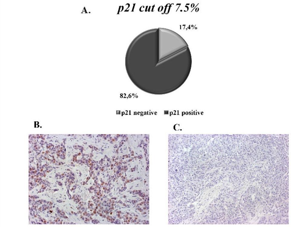 | Variables | p21 cut off 7.5% | Chi-Square | p | ||
