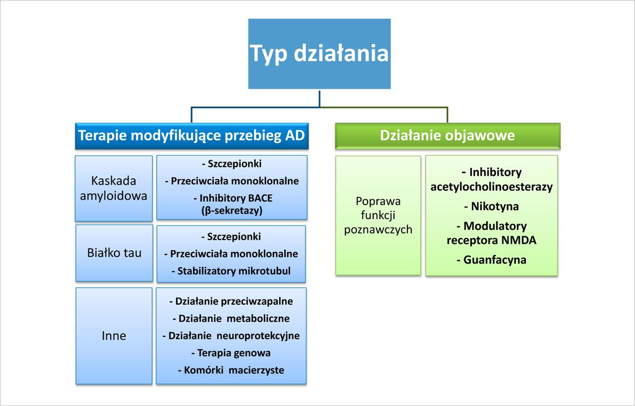 | Cilostazol | Inhibitor PDE34 | Redukuje akumulację Aβ i fosforylację białka tau, poprawia krążenie mózgowe | II | NCT02491268 | National Cerebral and Cardiovascular Center | Grudzień, 2020 |